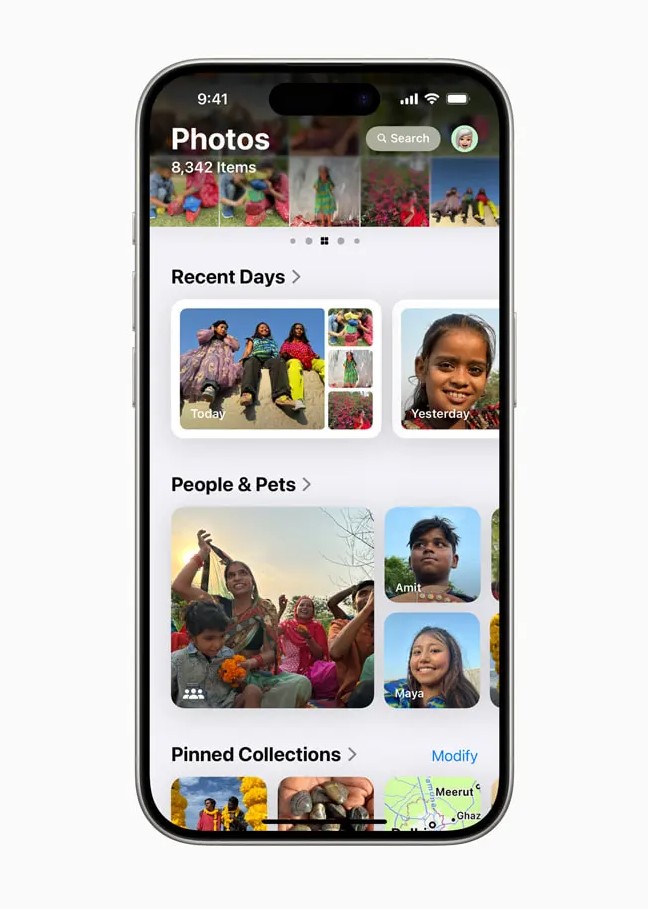 Aplikasi Photos juga mendapat desain baru, meskipun beberapa pengguna mengeluhkan perubahan ini selama masa uji beta. Album dan koleksi foto sekarang lebih terorganisir dengan kategori seperti Recent Days, People & Pets, Memories, dan fitur baru bernama Trips.