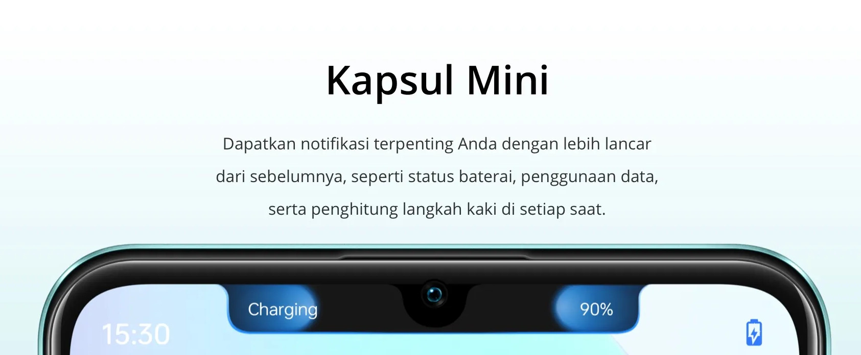 Perlu kalian ketahui, smartphone ini juga memiliki fitur hasil inovasi realme Lab, yakni Mini Capsule. Ini merupakan fitur yang mirip dengan dynamic island pada iPhone 14, yang bakal menampilkan notifikasi seperti statistik langkah pengguna, dan penggunaan data (kuota) harian, yang muncul di sekitar bagian kamera depan HP.